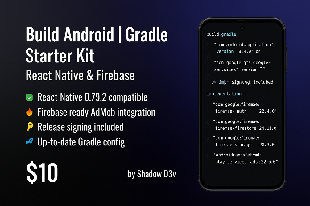 🚀 Launch Your React Native Android App in Minutes – Gradle, Firebase, AdMob Pre-Configured